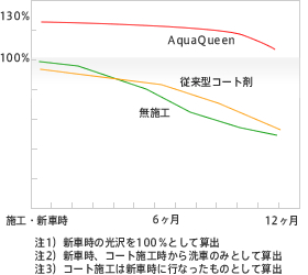 AquaQueenの光沢度は施工前光度の130%UPで長期間持続します。